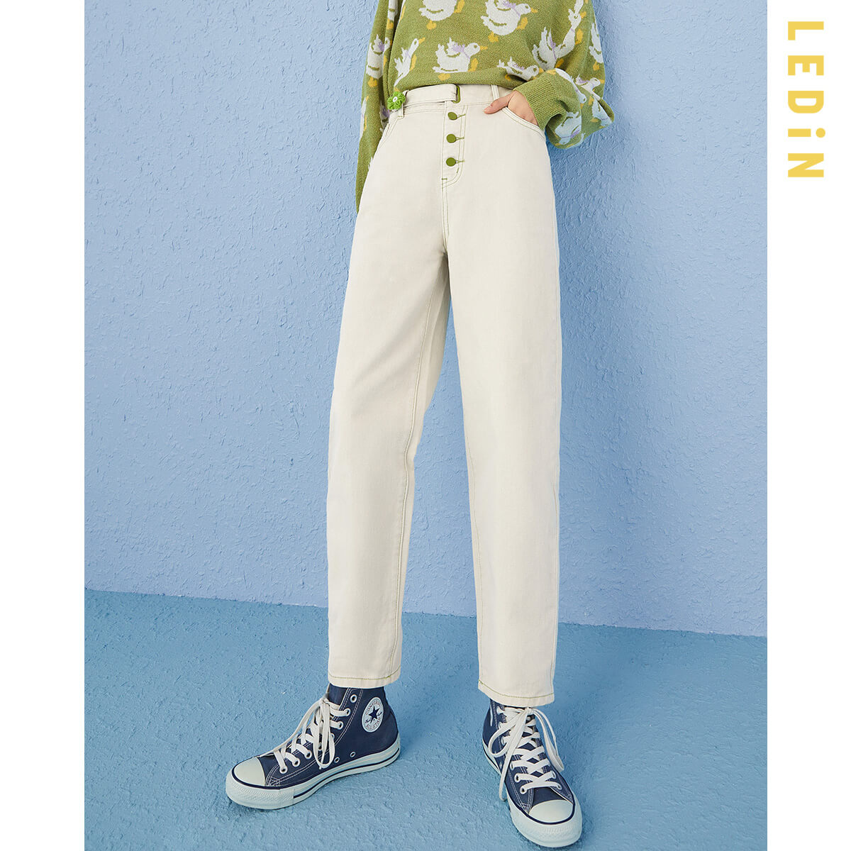 7分鐘前直筒牛仔褲女2021年春季新款褲子女裝童趣花花牛仔褲寬鬆 - 套餐二 買1送1-NT$1599